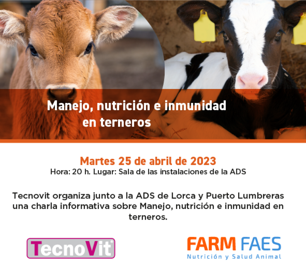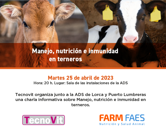 FARM FAES - Tecnovit organiza junto a la ADS de Lorca y Puerto Lumbreras una charla informativa sobre Manejo, nutrición e inmunidad en terneros. La jornada se realizará el martes 25 de abril, a las 20:00 H en la Sala de las instalaciones de la ADS.
